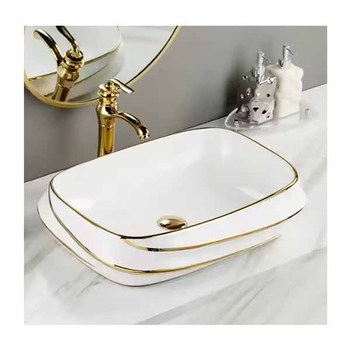 Lavabo de baño de cerámica galvanizada dorada de lujo, lavabo de tocador de forma ovalada, Material de piedra para hoteles, baños, lavado
